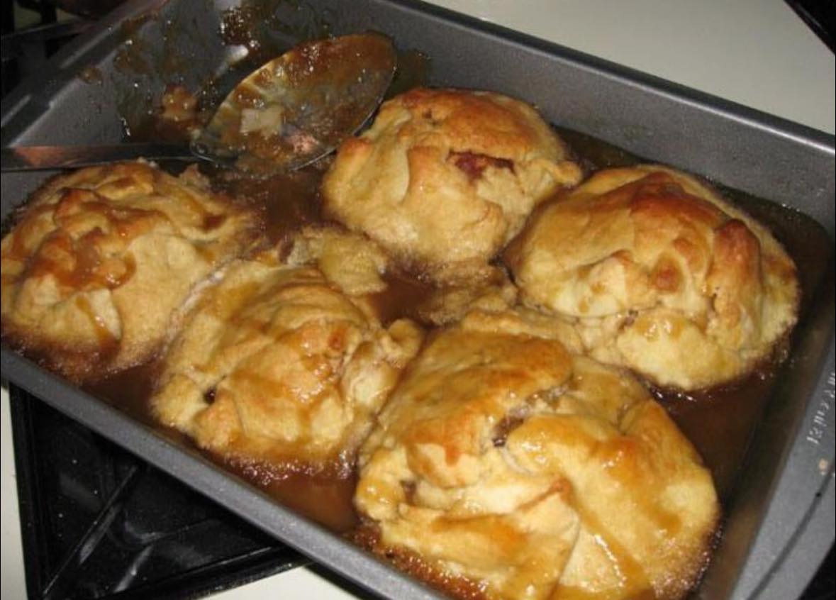 - Leg de verpakte appels in een ingevette ovenschaal van 9×13 inch. Giet de siroop over de dumplings.