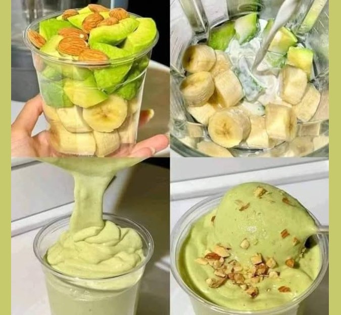 avocado 1 banaan 1 kopje spinazie 1 kopje amandelmelk 1/2 kopje Griekse yoghurt 1 eetlepel honing🥑