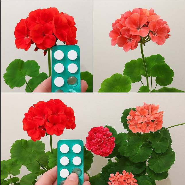 Een tablet onder de geranium voorkomt vergeling van de bladeren en kan zelfs een afgestorven bloem nieuw leven inblazen.