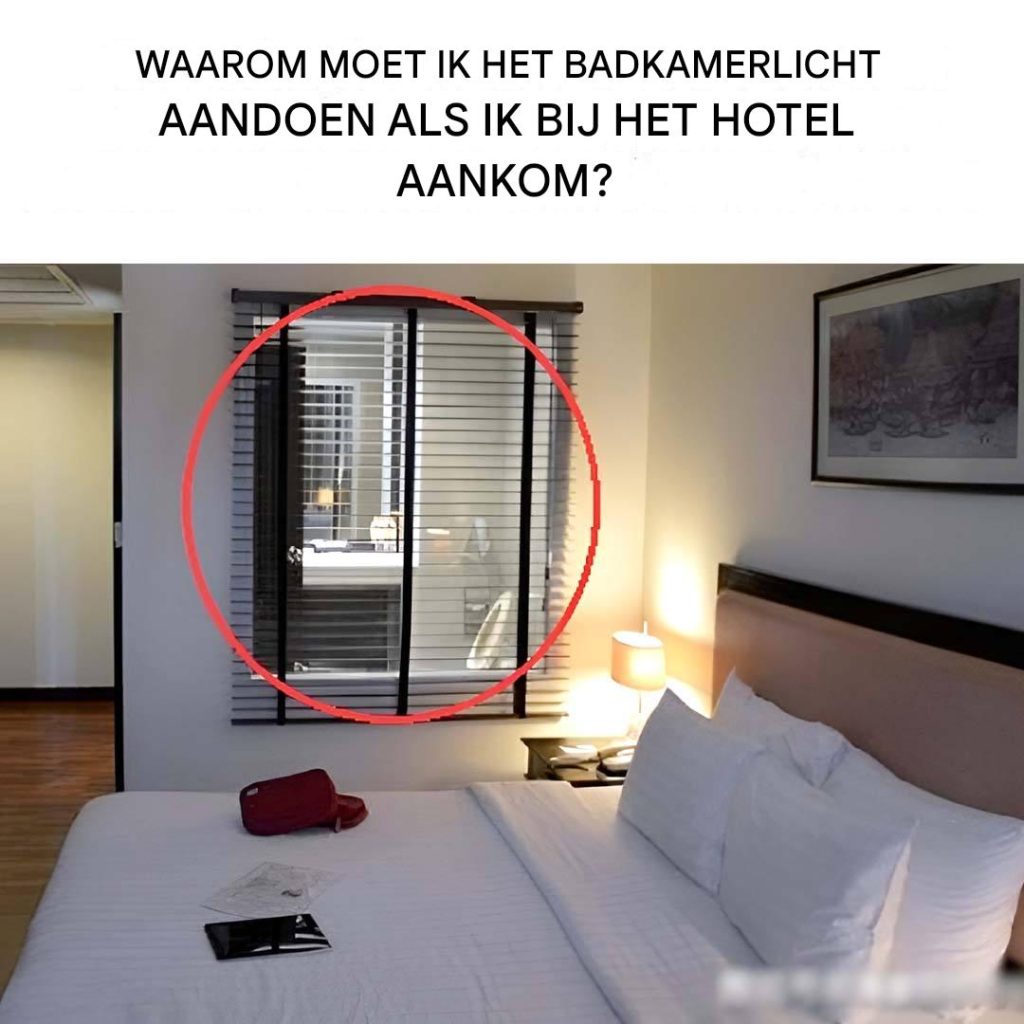 Wanneer u in een hotelkamer verblijft, kan het ‘s avonds soms lastig zijn om uw weg te vinden. Een handige tip is om een zacht licht in de badkamer aan te laten. Hierdoor kunt u zich oriënteren zonder dat u de hoofdverlichting aan hoeft te zetten, en u stoort ook niet de mensen die in de buurt slapen.