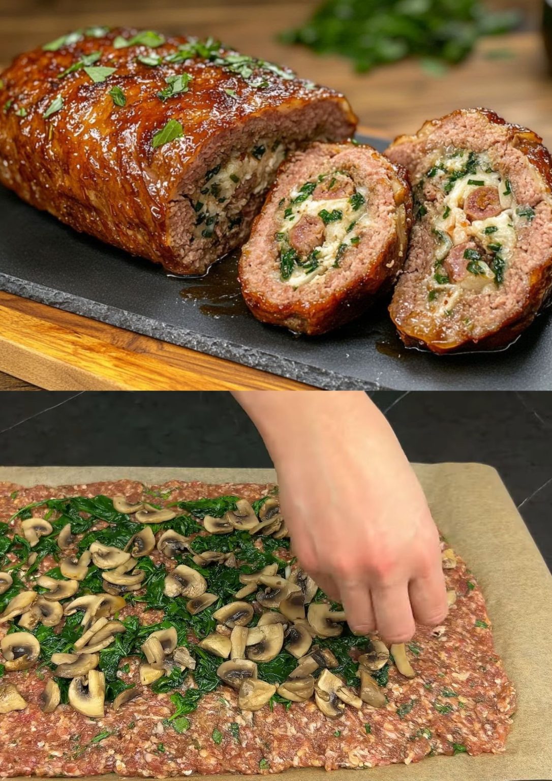 Hollands gehaktbrood is een klassiek gerecht dat in veel Nederlandse huishoudens op tafel komt. Dit recept geeft een moderne draai aan het traditionele gehaktbrood door het gebruik van spinazie, paddenstoelen, walnoten en een smaakvolle kaasvulling. De toevoeging van een lichte honing-sojaglazuur zorgt voor een heerlijke balans tussen hartig en zoet. Perfect voor een gezellige avondmaaltijd of als indrukwekkend gerecht voor een etentje.