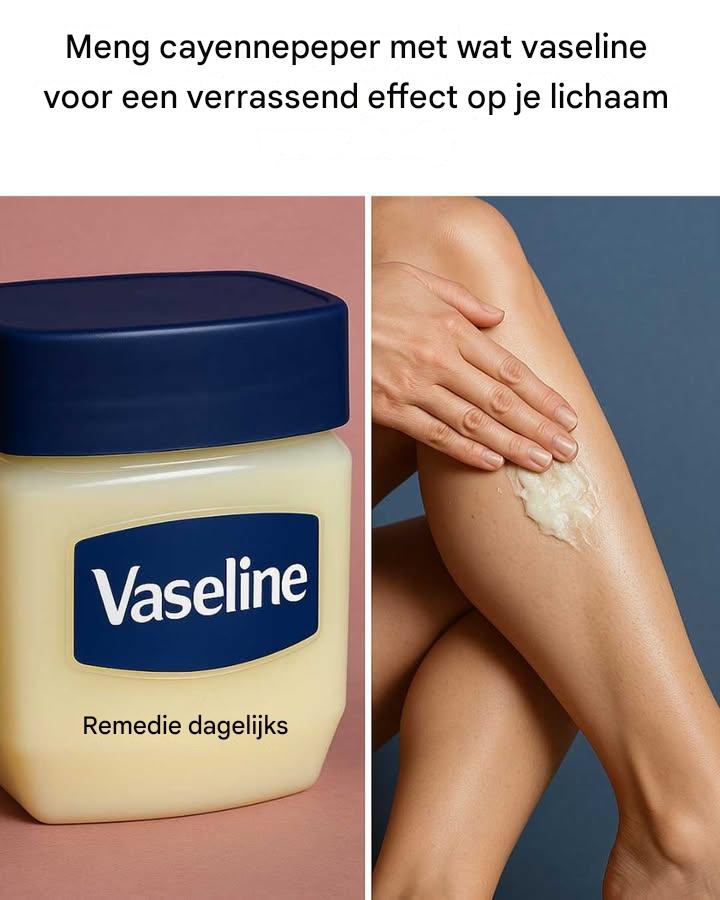 Vaseline, of vaseline, is een veelzijdig product dat al meer dan een eeuw wordt gebruikt om de huid te beschermen en te herstellen. De afsluitende werking creëert een barrière op het huidoppervlak, waardoor vocht wordt vastgehouden en uitdroging wordt voorkomen. Dit maakt het een uitstekende keuze voor de behandeling van gebarsten lippen, een droge huid en kleine snij- of brandwonden. Vaseline is niet-comedogeen, wat betekent dat het de poriën niet verstopt, waardoor het geschikt is voor verschillende huidtypen. De beschermende laag die het vormt, maakt het ook een ideale basis om te mengen met andere ingrediënten, zoals cayennepeper, om hun effect te versterken.