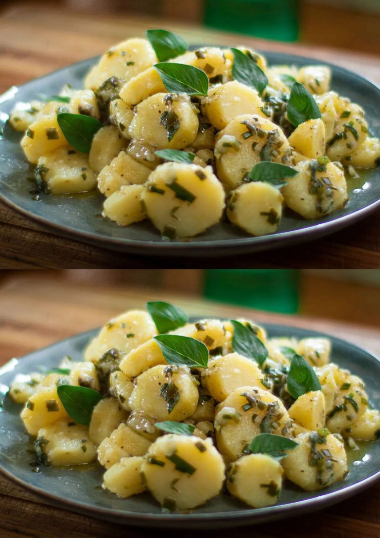 Deze verfrissende aardappelsalade belichaamt de pure, eenvoudige schoonheid van de Italiaanse keuken. Anders dan traditionele, zware mayonaise-gebaseerde salades, laat dit gerecht de natuurlijke smaken van verse ingrediënten spreken – een ware ode aan de Mediterrane eetcultuur.