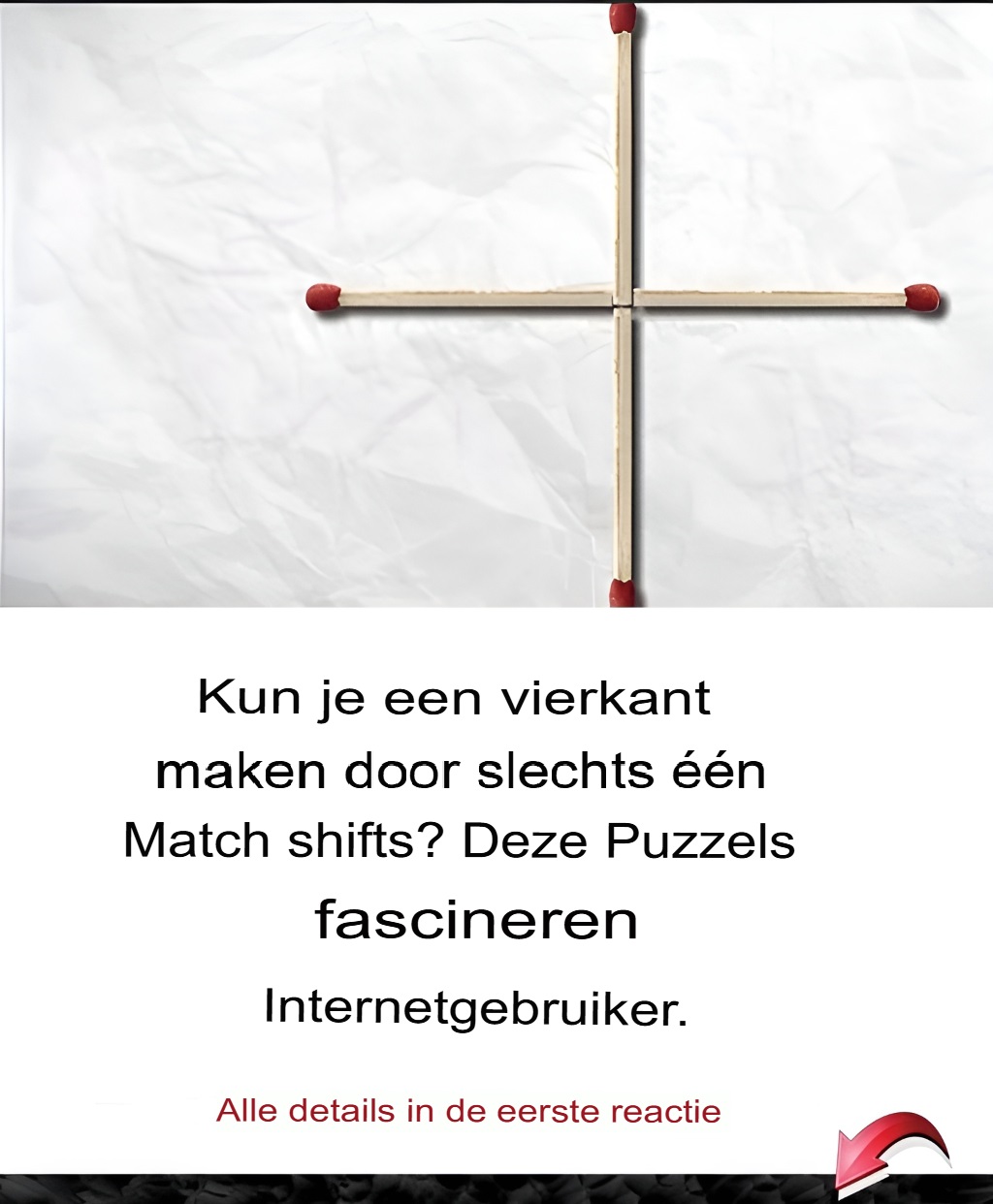 Op het eerste gezicht lijkt het probleem onoplosbaar. Je kijkt naar de lucifers die in een kruis zijn gerangschikt en probeert een duidelijk vierkant te onderscheiden. Maar dat is de subtiliteit: de oplossing vereist een originele aanpak, ver weg van de gebruikelijke denkpatronen.