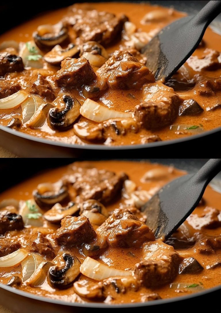 Bereid je voor op een gerecht dat de essentie van huiselijke warmte en culinaire verfijning perfect vangt. Dit  rundvlees met champignons in roomsaus is meer dan zomaar een maaltijd – het is een smaakvolle reis die troost en culinaire expertise combineert.