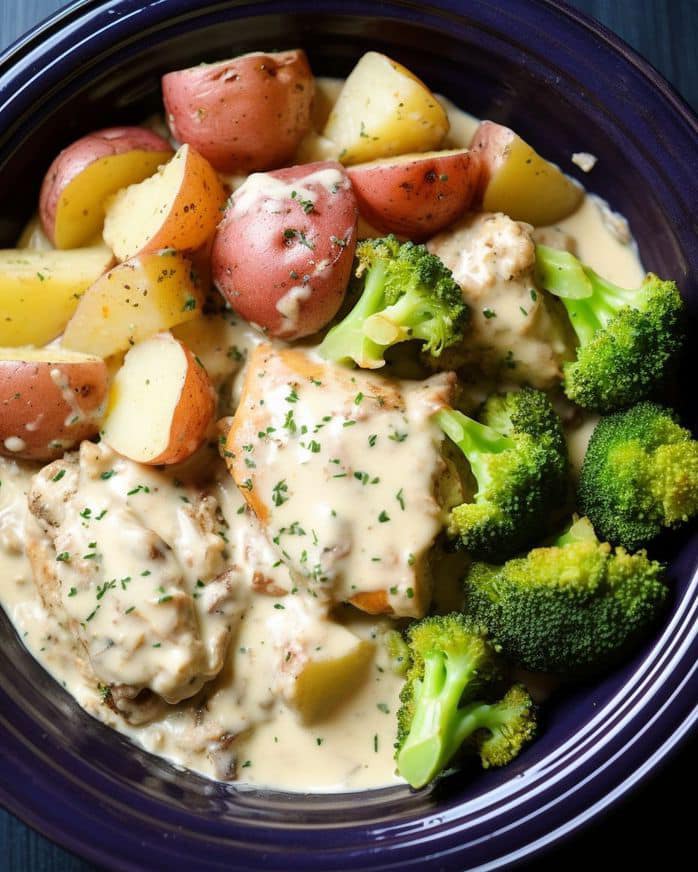 Dit romige gerecht met kip, aardappelen en broccoli is een stevige, geruststellende maaltijd die perfect is voor doordeweekse diners. Het combineert malse kip met smaakvolle aardappelen en broccoli, allemaal gesmoord in een rijke, romige saus. Dit gerecht is eenvoudig te maken en kan in een enkele pan worden bereid om het gemakkelijk op te ruimen.