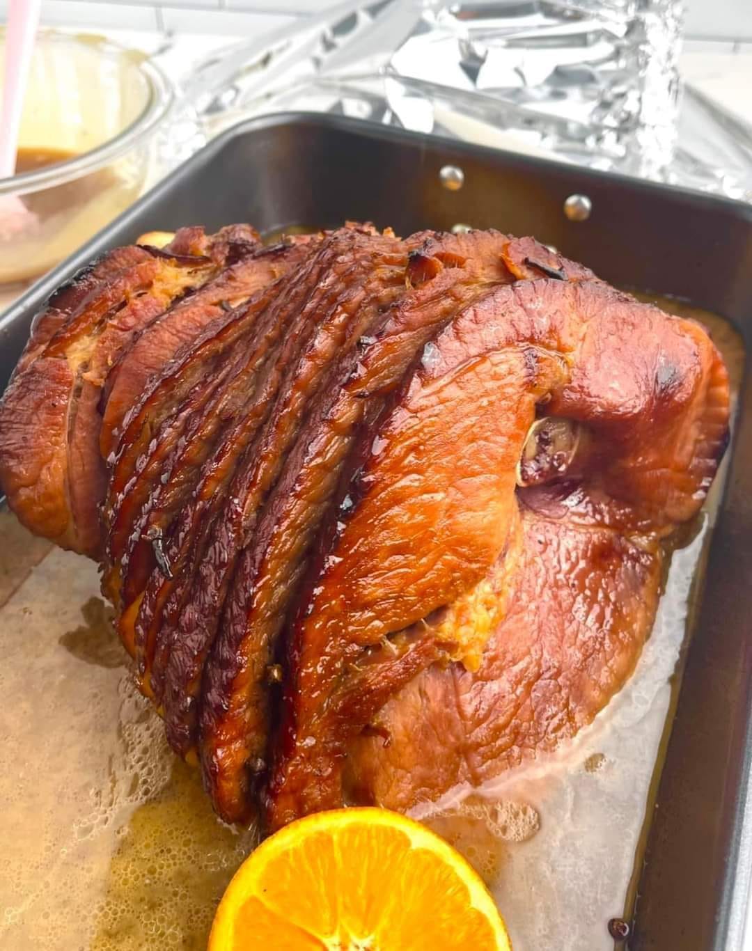 Deze spiraalvormige ham wordt in de oven gekookt met pittig sinaasappelsap en verwarmd tot de perfecte temperatuur met een gouden, houtachtige glazuur van ahornsiroop en bruine suiker. De gekarameliseerde buitenkant in combinatie met het sinaasappelsap houdt je voorgekookte ham sappig en heerlijk tijdens het opwarmen.