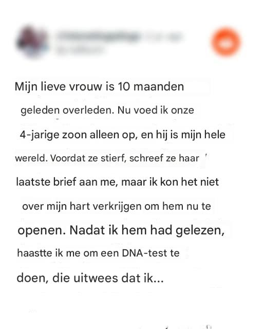 Na verloop van tijd keerde OP’s leven geleidelijk terug naar normaal. Zijn zoon werd zijn hele universum en hij kon zich niets anders voorstellen dan hun band. In deze periode ontdekte hij de laatste brief die zijn vrouw hem had geschreven. Ondanks het besef van de grote gave die ze achterliet, durfde OP hem pas 10 maanden later te lezen.