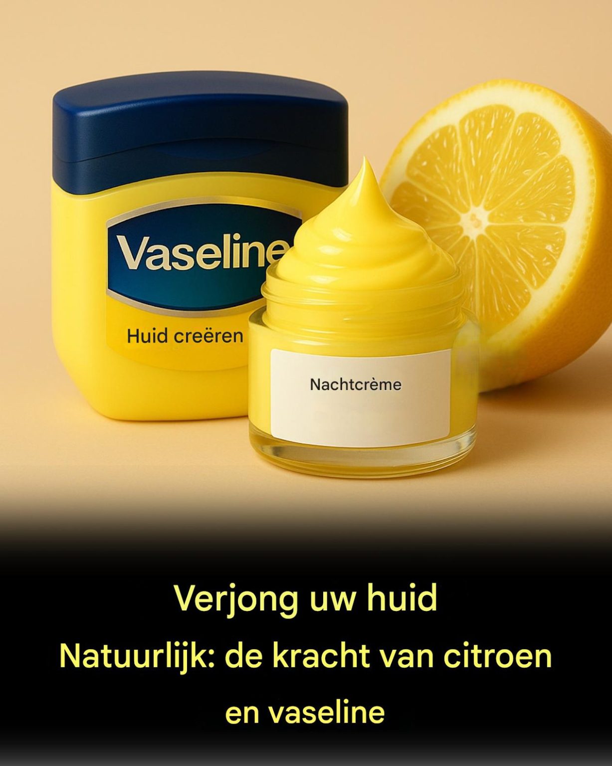 Vaseline, bekend om zijn diep hydraterende eigenschappen, creëert een beschermende barrière die vocht vasthoudt. Citroen daarentegen is rijk aan vitamine C en citroenzuur , waardoor het een natuurlijke exfoliant en huidverhelderaar is. In combinatie werken deze ingrediënten synergetisch om je huid te revitaliseren , tekenen van veroudering te verminderen en een jeugdigere, stralende teint te bevorderen .